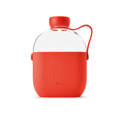 Branded Hip flask water bottle coral. The Hip, a modern take on the traditional hip flask is available in a variety of stunning new colourways and soft textured silicone sleeves. BPA and BPS free, the Tritan plastic providing glass-like clarity, can be branded with a single colour or full-colour logo, in either one or two positions, for great endless branding opportunities. Hip by name. Hip by nature. Hip water bottles are made from Tritan plastic for glass-like clarity and lightweight carrying, with a threaded cap that twists on easily and securely for leak-proof, worry-proof travels. The vibrant soft silicone offers a tactile touch for easy gripping and soft bottom stops the bottle from sliding and protects surfaces. Features: BPA Free Reusable Recyclable Dishwasher safe Screw cap lid Clear tritan body Metal clip side carrying strap 650ml capacity