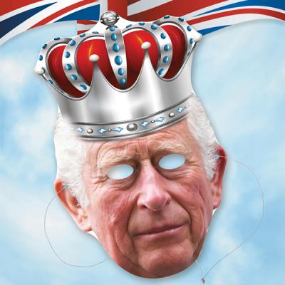 Printed King Charles Coronation Face Masks. Novelty face masks to celebrate King Charles III coronation. Our customised Coronation face masks are a great low cost promotional item to celebrate the up coming Kings Coronation. An ideal giveaway to show your support when the country will come together over this exciting long weekend of joy and celebration. Our promotional Coronation face masks are branded with a full colour print with your company logo or branding. They are made from durable 380gsm card.