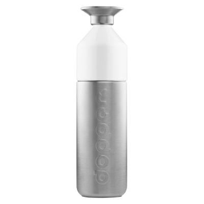 Dopper Steel 800ml Bottle Silver White. The perfect 800ml stainless steel water bottle for your next adventure, by re-using this water bottle you reduce the enormous amount of plastic bottles floating in our oceans. And this is definitely one instance where less is more! Perfect to have with you on city excursions, during sports and outdoor adventures, long days at work, and relaxing times at home. At 206 grams, this 800 ml reusable bottle weighs less than your phone Strong stainless steel body made with 30% recycled steel Iconic three-part design: bottle and cup in one for easy filling, cleaning, storing and sharing Dishwasher safe up to 65°C Please note: this is not a thermos bottle Sustainability Cradle to Cradle Certified® Bronze: the global standard for safe, circular and responsible products Responsibly produced in China according to the BSCI Code of Conduct Sea transportation using biofuel as part of the GoodShipping program Dimensions and weight Holds 800 ml Diameter: 7,3 cm Height: 25 cm Weight: 206 grams Materials 18/8 Food Grade Stainless Steel (body and cap) Tritan (Cup) Silicone (seal ring in cup and cap) Free of BPA and other harmful chemicals To find out more about this printed Dopper Steel 800ml Bottle Silver White contact our sales team on 020 8318 9603 or email sales@promo-brand.co.uk