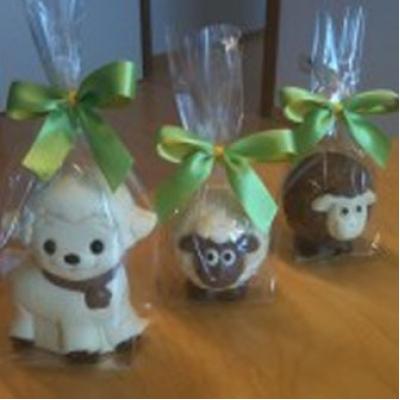Promotional Easter Chocolate Lambs. Each of these cute chocolate Easter lambs are individually wrapped in clear cello and have a ribbon bow and a tag which can be printed with your company log and name, and Easter message.