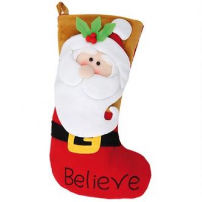 Promotional Santa Stocking. A fun Christmas stocking with a 3D Santa. The stocking measures 47 cm made from a soft plush material. We also have the stocking available with a snow or reindeer.