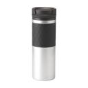 Promotional Nova vacuum insulated travel mug. The new innovative Nova tumbler is perfect for tea, coffee and hot or cold drinks. It features a built-in tea bag hook and removable tea basket so your tea can steep wherever you are and includes a leak-proof lid which opens and closes with the push of a button. The double-wall 18/8 grade stainless steel vacuum insulated construction keeps drinks hot for 5 hours and cold for 15 hours. Volume capacity is 475 ml. Presented in an Avenue gift box. Stainless steel.
