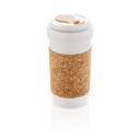 Promotional Eco Reusable Can Mug With Cork Sleeve. An ECO mug made from PLA without plastic. BPA-free with no toxic chemicals or plastics. Reusable, biodegradable and compostable. Truly sustainable and safe for those who care about their health and the environment. Heat resistant up to 120 degree Celsius, microwave safe and dishwasher safe (top rack). Spillproof. Content: 400ml.