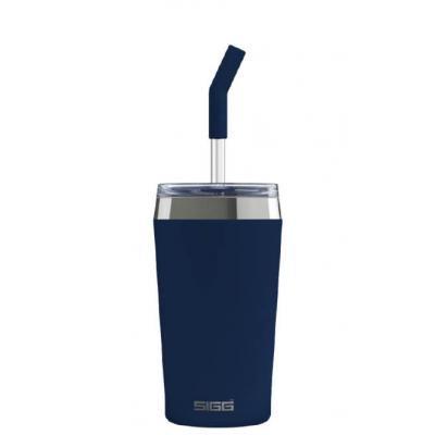 SIGG Helia Tumbler Mug 0.6L Night Ink. This vacuum-insulated, 18/8 stainless steel mug has been thoughtfully designed to make your drinking experience as easy and enjoyable as possible. It’s sturdy enough for any adventure while also preserving the taste and aroma of your beverage to ensure that every sip is perfectly refreshing. A copper-coated double-wall construction will preserve your iced tea, cocktail or smoothie at its optimal temperature and ensure that the outer wall of the mug will not sweat. Cold drinks stay cool for 24 hours while hot beverages can last 4 hours before losing their warmth. Helia also features a handy durable glass straw and cleaning brush so you can avoid disposable plastic straws altogether. And you can rest assured that, like all SIGG products, it has been designed with sustainability and food safety as top priority; meaning it’s both recyclable and free of harmful chemicals such as BPA. This SIGG product has been designed and engineered in Switzerland. This SIGG product has insulation properties. It keeps the contents hot or cold for the duration indicated. All ingredients are BPA-free. This SIGG product has been produced with materials that are food-safe. Capacity: 0.6L Weight: 340g Diameter: 8.8cm Height: Base to top of lid: 200mm / Base to top of straw: 300mm