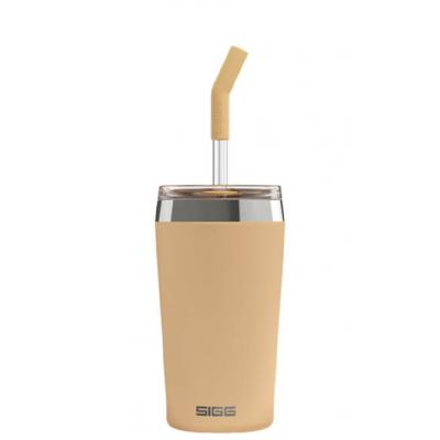 Every detail of the Helia Tumbler Mug has been thoughtfully designed to make your drinking experience as easy and enjoyable as possible. It is spill-proof with a removable silicon mouthpiece that provides an exceptionally comfortable drinking angle. A wide-mouth top also makes it easy to fill with ice cubes or fruit slices. It’s even easy to check if you need a refill thanks to the closure made from transparent Tritan. Helia mug also comes with a glass straw as a durable and environmentally conscious alternative to disposable plastic. A matching brush is included to make cleaning as convenient as possible. How thoughtful! This vacuum-insulated, 18/8 stainless steel mug has been thoughtfully designed to make your drinking experience as easy and enjoyable as possible. It’s sturdy enough for any adventure while also preserving the taste and aroma of your beverage to ensure that every sip is perfectly refreshing. A copper-coated double-wall construction will preserve your iced tea, cocktail or smoothie at its optimal temperature and ensure that the outer wall of the mug will not sweat. Cold drinks stay cool for 17 hours while hot beverages can last 3 hours before losing their warmth. Helia also features a handy durable glass straw and cleaning brush so you can avoid disposable plastic straws altogether. And you can rest assured that, like all SIGG products, it has been designed with sustainability and food safety as top priority; meaning it’s both recyclable and free of harmful chemicals such as BPA. Capacity: 0.45L Weight: 290g Diameter: 8.8cm Height: Base to top of lid: 160mm / Base to top of straw: 250mm
