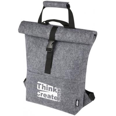 Multi functional and trendy combined roll-top backpack and bicycle bag made of high quality, soft and durable GRS certified recycled felt. Features a large main compartment, front pocket, adjustable shoulder straps and 3 hook and look straps to attach the bag to the back of a bicycle.