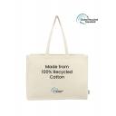 Promotional Quebec 140 gsm Two-Tone Recycled Cotton Tote. Step into a brighter future with our Quebec - 5 oz. Two-Tone Recycled Cotton Tote. This nature-inspired masterpiece redefines fashion. The upper part of the bag is made from a blend of 70% recycled cotton and 30% recycled polyester, giving it an elegant style. The lower section and handles, made from 5 oz. (140 gsm) recycled cotton in mixed colours, add a chic colour-block effect. The bag's spacious interior is a testament to both design and functionality, making it ideal for shopping, commuting and more. Your recycled cotton tote is more than just a bag, it's the embodiment of your values.