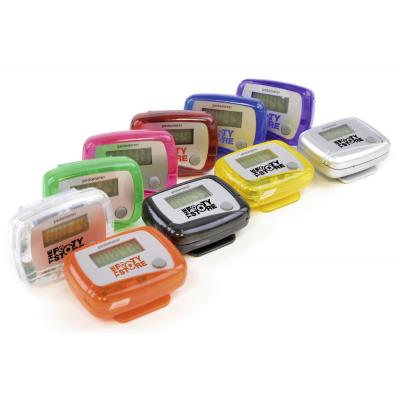 Carmel Pedometer. Printed Plastic basic pedometer with step counter. It will automatically turn off if motion is not detected after one and half minutes but still retains the memory. Batteries included. A ideal promotional item for gyms, health centres, sports clubs and sporting events.