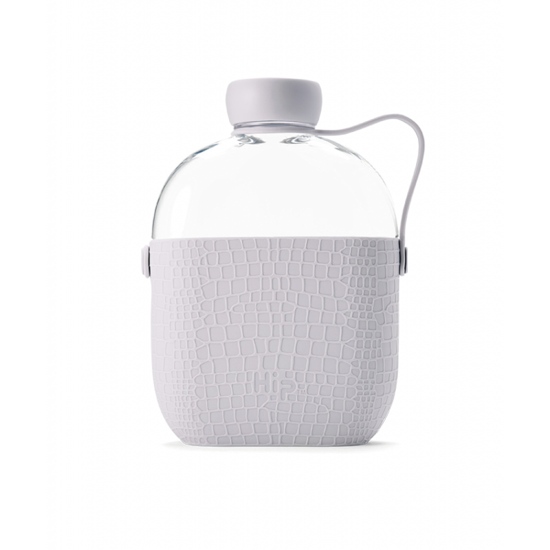 Printed Hip water flask bottle cloud grey. The Hip, a modern take on the traditional hip flask is available in a variety of stunning new colourways and soft textured silicone sleeves.