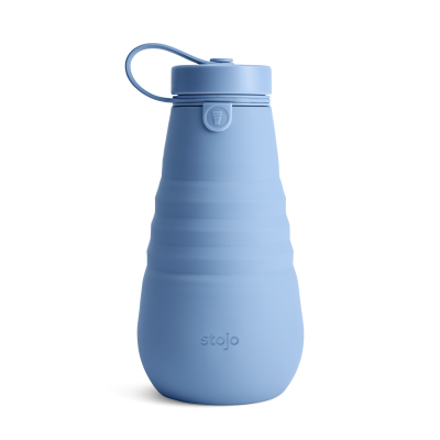Promotional Stojo Collapsible Reusable Bottle Steel Blue. This shape-shifting wonder holds a whopping 20 oz of liquid when full, and collapses into a polite sphere when empty. Save even more space by attaching it to your bag strap, and show off how efficient you are. To collapse, simply unscrew the cap, close your Stojo like an accordion, and re-screw for a leak-proof seal. Pro-tip: Loop the cap around your bag strap or belt when you’re short on space/hands. To clean your Stojo bottle, remove the cap from the silicone body and place both on the top rack of your dishwasher, or wash by hand. Our food-grade silicone is LFGB Certified, which is a European safety standard that is far stricter than the FDA’s. This means you can safely use Stojo to enjoy all your favourite beverages, regardless of temperature. The screw-on cap creates airtight, leak-proof seal LFGB Certified silicone bottle, BPA-free, polypropylene cap, No phthalates, leads, or glues. Our custom branded Stojo bottles are available in the following colours aqua, carnation pink, cashmere grey, eucalyptus green, lilac, peony pink, sage green or steel blue. For more information on our printed Stojo bottles and a free visual contact us at sales@promo-brand.co.uk
