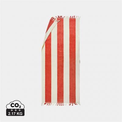Promotional Amadeo Beach Towel Recycled Cotton Striped. Imagine a peaceful day at the beach with the branded Amadeo recycled cotton (60% recycled cotton and 40% cotton) beach towel, it offers the perfect balance of comfort and sustainability at 450 gsm. With its generous size of 80x180 cm and vertical stripes, it's Made in Portugal. Comes in a biodegradable polybag.