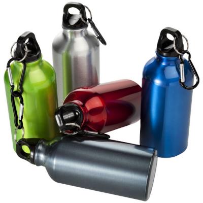 Promotional Oregon 400 ml matte sport bottle with carabiner. Oregon 400 ml matte sport bottle with carabiner. Single wall bottle with twist-on lid. Features on-trend matte look. Carabiner is not suitable for climbing. Volume capacity is 400ml. BPA-free aluminium.
