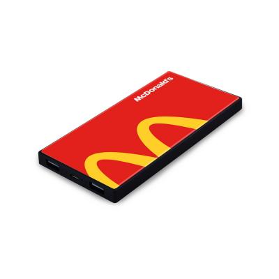 Promotional Vitro Slim Power Bank. The Vitro Slim Power Bank the perfect way to showcase your brand. Housed within a dark black container, this slim power bank comes available with full colour print across the front, edge-to-edge, ensuring that you can get your message out there. Being made from tempered glass gives it a chic feel, and the enamel finish is perfect for those high-end brands. The vitro slim power bank comes with a standard USB connector for external charging, and a micro-USB port to charge the power bank itself. The sleek size ensures that it can be stored within a pocket, and the 5000mAh battery ensures that it will last on all your travels!