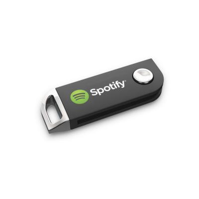 Made from polished zinc alloy for a glossy high-quality finish, this eye-catching USB has ample space for branding via spot or full colour printing or, alternatively, engraving. Its unusual top combines an easy-release mechanism to access the USB connector and a sturdy hook to fasten it anywhere.